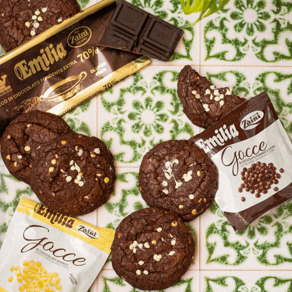 Aggiungi le gocce di cioccolato e amalgama. Fai riposare l’impasto in frigo per 1–2 ore.4